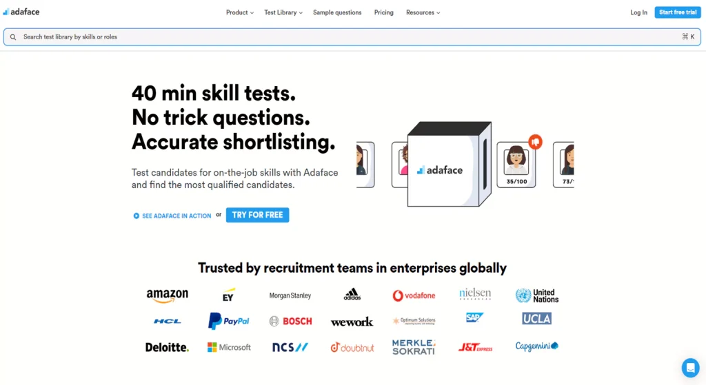 Adaface is perfect for companies looking to enhance candidate engagement, improve hiring accuracy, and speed up recruitment with AI-driven, skills-based assessments.