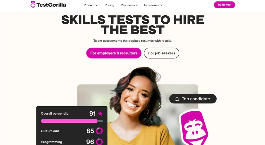TestGorilla is a cutting-edge talent assessment platform designed to help employers and recruiters make data-driven hiring decisions. By replacing traditional resumes with skills-based evaluations, TestGorilla ensures a more accurate, fair, and efficient recruitment process. Trusted by over 10,000 companies, it simplifies candidate selection while reducing hiring biases. As one of the leading HR assessment tools, it enables organizations to identify top talent effectively.