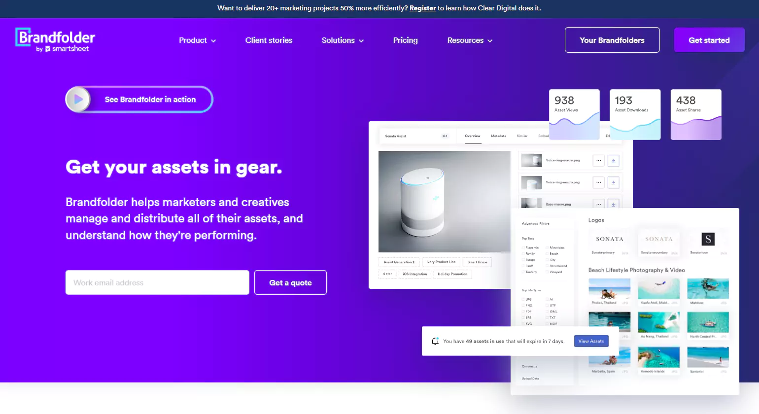 Bynder is a leading digital asset management (DAM) platform that empowers brands to easily manage, organize, and distribute digital content across teams and channels. Designed for modern marketing resource management software eting operations, Bynder streamlines the content lifecycle from creation to delivery, ensuring brand consistency, faster go-to-market times, and increased productivity. Trusted by global brands such as Spotify, Puma, and Five Guys, Bynder is the foundation for managing rich media in a digital-first world.
