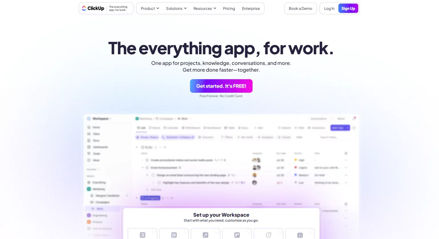 • Docs & Collaboration: Create documents, add comments, collaborate in real time, and link docs to tasks.